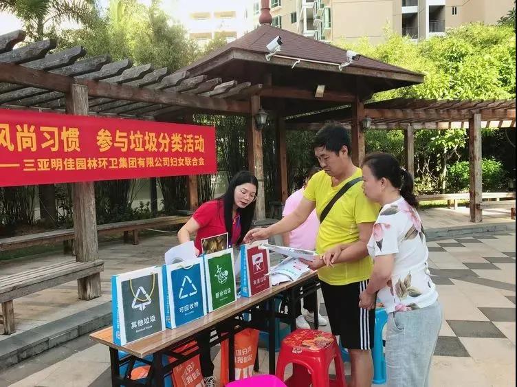為進一步強化小區(qū)居民對垃圾分類的認識,不斷提高居民愛護環(huán)境、保護環(huán)境的意識,養(yǎng)成垃圾分類的好習(xí)慣,帶動更多人參與到垃圾分類的行動中來,助力三亞創(chuàng)建全國文明城市。11月17日9時,三亞明佳集團黨支部、工會、婦聯(lián)、共青團聯(lián)合在南新悅城小區(qū)開展“倡導(dǎo)文明風(fēng)尚習(xí)慣 參與垃圾分類活動”為主題的垃圾分類宣傳活動。