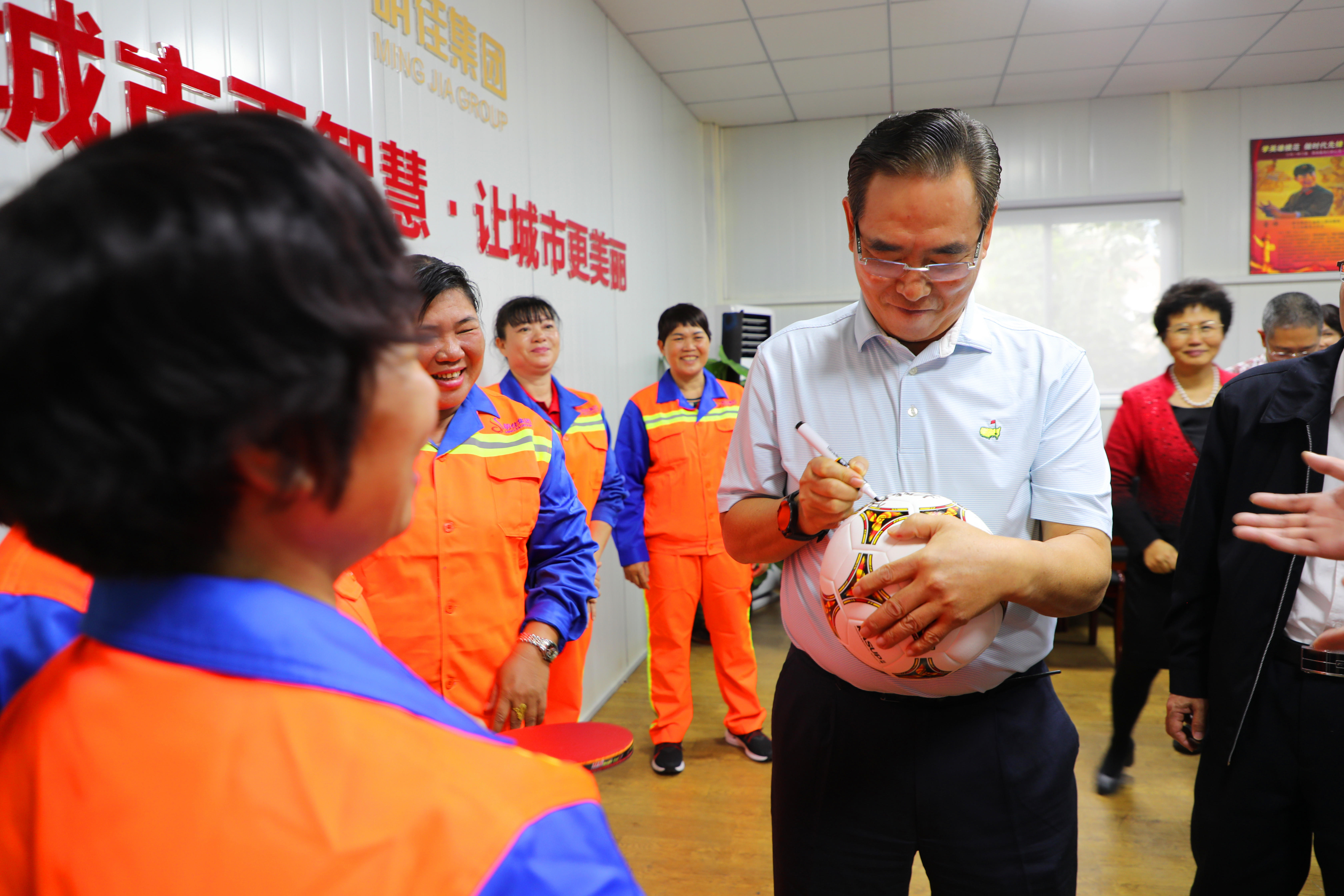 他肯定了明佳集團(tuán)工會(huì)取得的成績,并親切慰問了現(xiàn)場的環(huán)衛(wèi)工人,與他們一一握手,并合影留念。