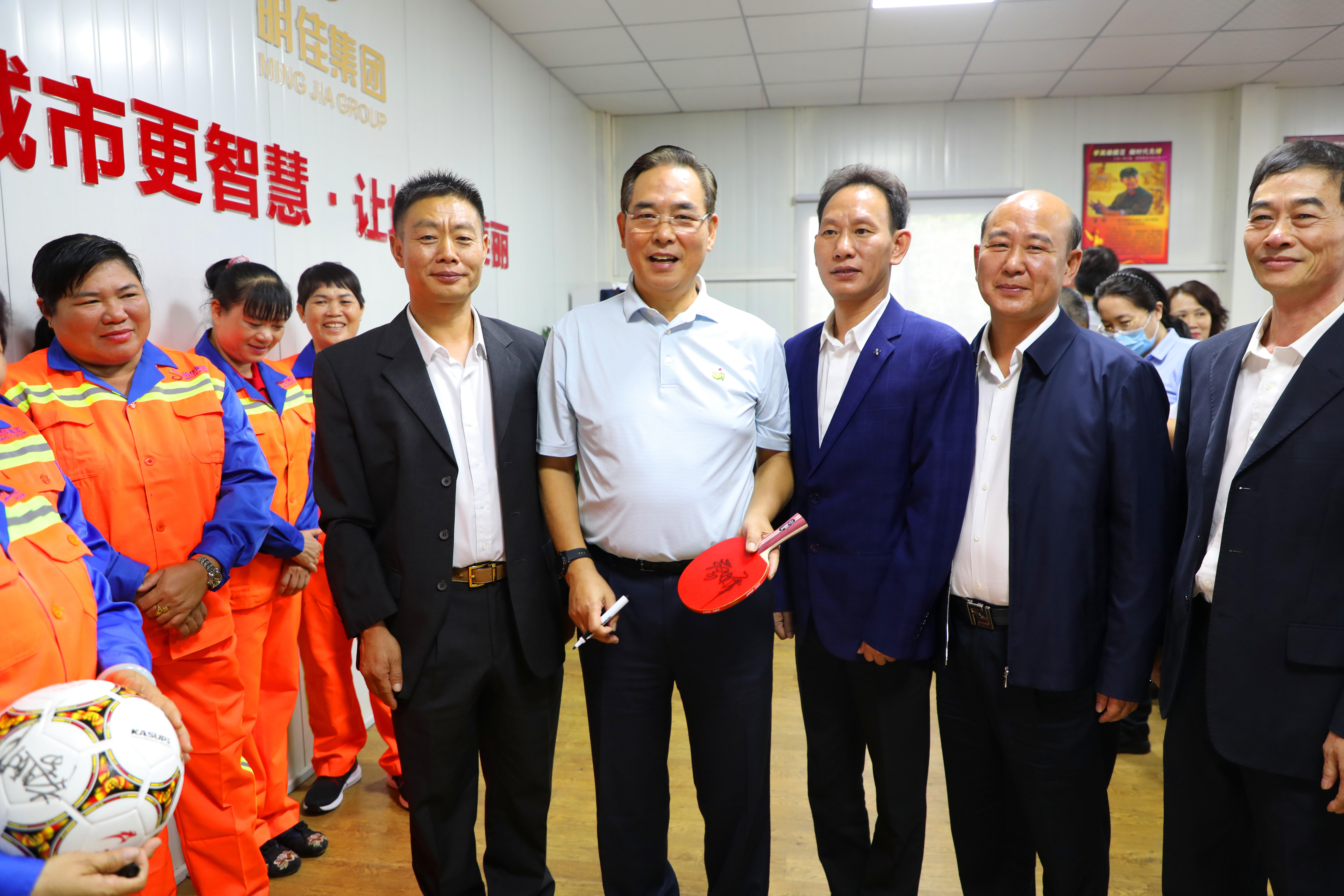 他肯定了明佳集團工會取得的成績,并親切慰問了現(xiàn)場的環(huán)衛(wèi)工人,與他們一一握手,并合影留念。