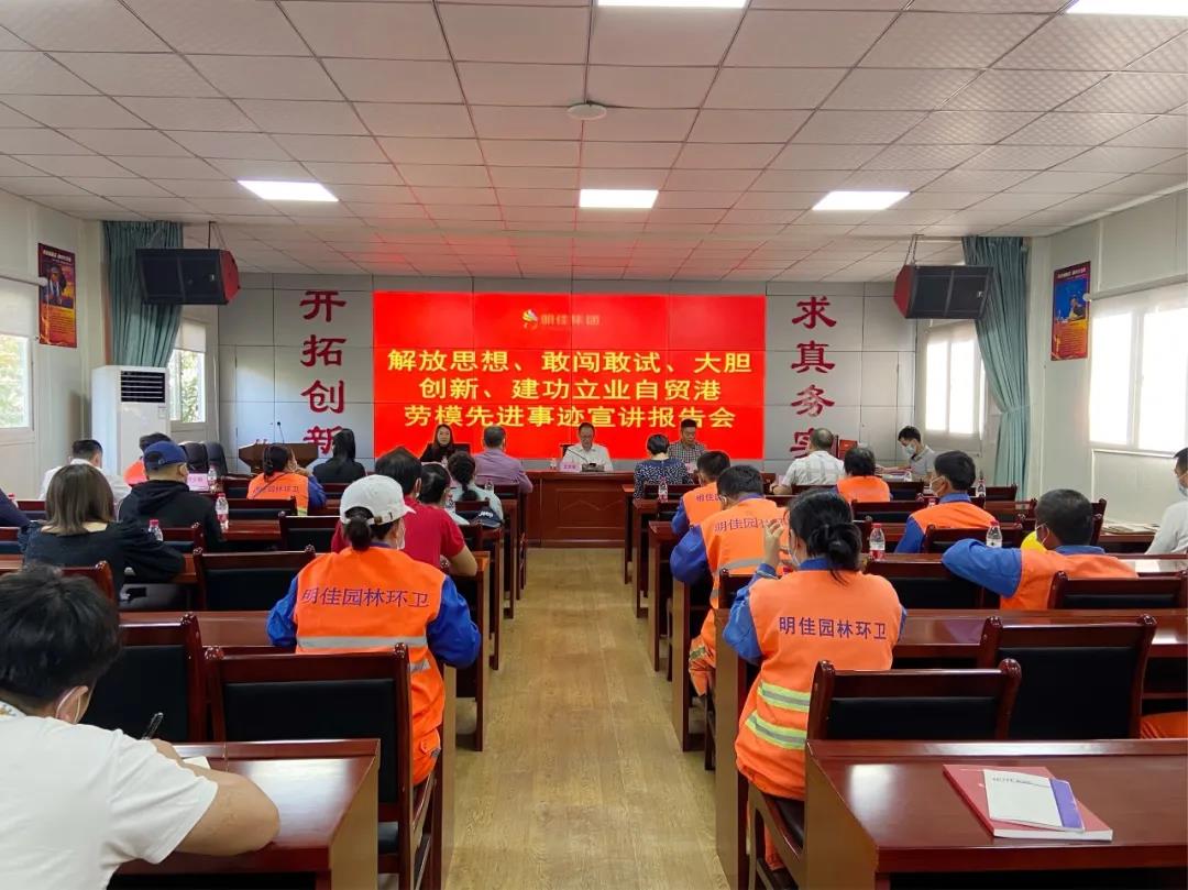 會上,全國勞動模范獲得者吉立斌、王小丹、海南省工人先鋒號代表符少菊,用樸實的語言、真摯的情感和鮮活的事例,分別從不同角度講述了他們在海南自由貿(mào)易港建設(shè)中愛崗敬業(yè)、刻苦鉆研、不畏艱難的奮斗故事,同時分享了自己對勞模精神和工匠精神的理解和體會,講述了感人而充滿正能量的故事,為明佳環(huán)衛(wèi)集團的職工樹立了學(xué)習(xí)的榜樣。