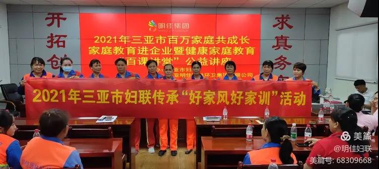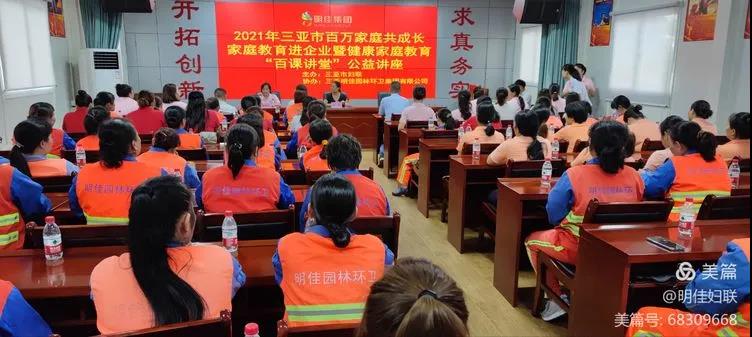 為引導(dǎo)廣大婦女帶動(dòng)家庭成員大力培育新時(shí)代家庭觀,推動(dòng)社會(huì)主義核心價(jià)值觀落細(xì)落小落實(shí)到家庭,切實(shí)落實(shí)家庭教育立德樹人的根本任務(wù),根據(jù)省婦聯(lián)“家家幸福安康工程”部署,結(jié)合“我為婦女群眾辦實(shí)事”實(shí)踐活動(dòng)。2021年7月20日下午15時(shí)30分,由市婦聯(lián)主辦、明佳婦聯(lián)協(xié)辦的2021年三亞市百萬家庭共成長家庭教育進(jìn)企業(yè)暨健康家庭教育“百課講堂”公益培訓(xùn)課在明佳三樓會(huì)議室成功舉行,培訓(xùn)內(nèi)容為家庭教育知識(shí)和女性健康知識(shí),明佳集團(tuán)80余名職工參加了此次培訓(xùn)。