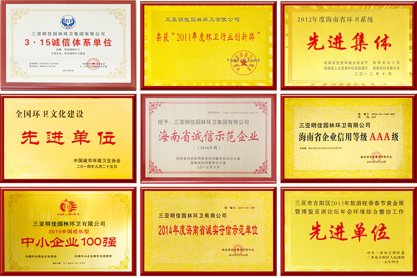 2011年12月被三亞市人民政府評為“2011年度三亞市環(huán)境衛(wèi)生管理工作先進(jìn)單位”